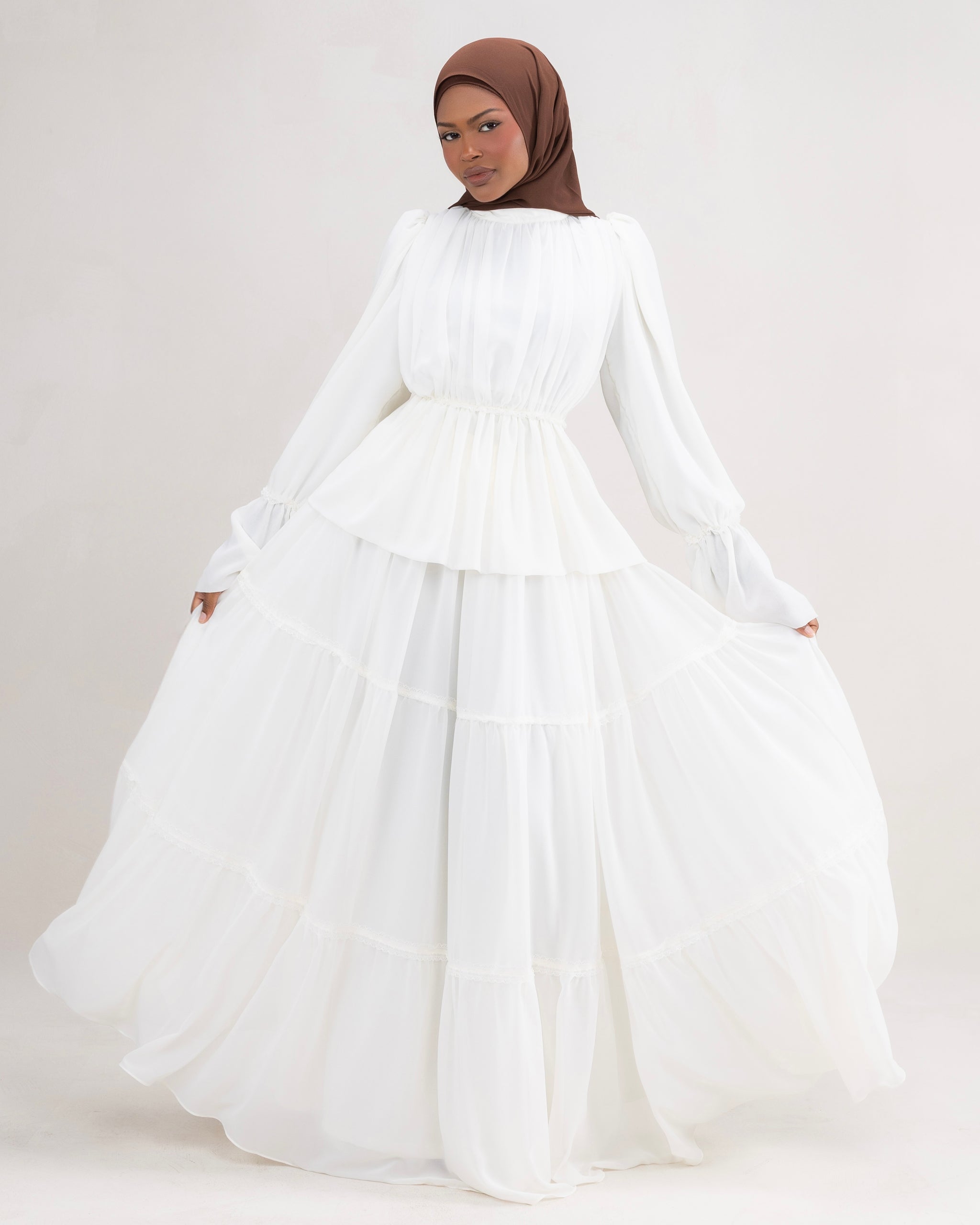 The Zaina Skirt is a dreamy, three-tier design that floats with every step. Each tier is separated with delicate lacing, adding a soft, romantic touch while giving the skirt its gentle, drapey movement. Crafted for comfort, it features a stretchy elastic waistband that sits smoothly and makes it easy to wear all day.